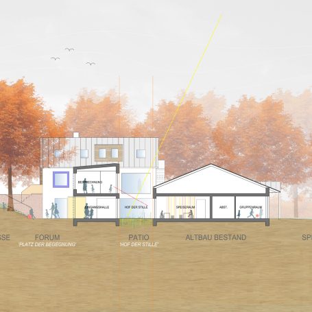 die Zweckmäßigkeit und Funktionalität der Innen- und Außenräume gelegt.Der Wettbewerb wurde im Team als Mitarbeiter im Architekturbüro Mutert durchgeführt.