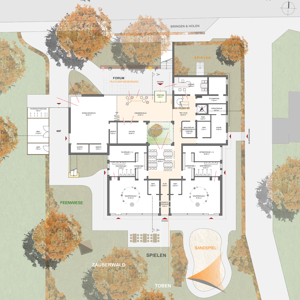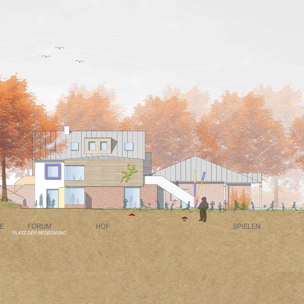 die Zweckmäßigkeit und Funktionalität der Innen- und Außenräume gelegt.Der Wettbewerb wurde im Team als Mitarbeiter im Architekturbüro Mutert durchgeführt.