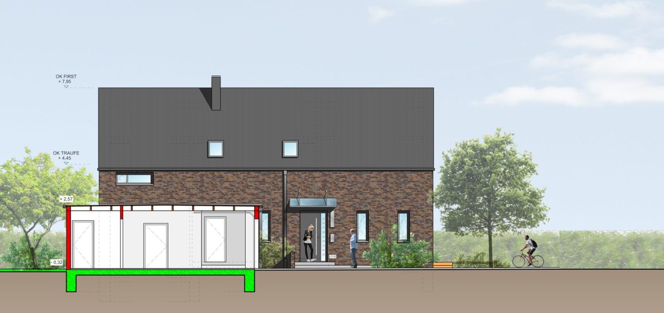 Die Klinkerfassade passt sich in die Umgebung ein. Große Fenster, praktische und gut verknüpfte Räume zwischeneinander sowie nach Außen sind ein Merkmal des Projekts.